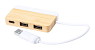 Hub USB din bambus, cu insertie de extract de marmura. CU 2 porturi USB si 1 USB-C, USB 2.0. Inclusiv cablu cu conexiuni USB si USB-C. Material 1:Bambus Material 2:Extract de marmura Dimensiune:77×12×47 mm USB hub:Da Greutate:57grame Tara de origine:CN GO GREEN |
