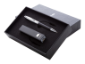 Setul business include un pix cu invelis din inlocuitor piele si o baterie externa(2200 mAh), cu cablu incarcator micro USB. In cutie neagra de cadou. Marca Antonio Miro.Material 1:Aluminiu Material 2:Metal Material 3:Piele PU Dimensiune:185×117×33 mm Tip instrumente de scris:Pix Tipul mecanismului:Apasare Culoare mina:albastra Baterie reincarcabila incorporata:Igen Capacitatea bateriei:2200 mAh Cablu USB inclus:Da Incarcabil la USB:Yes