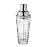 Shaker din sticla cu capac din otel inoxidabil, retete de cocktailuri si masuratori imprimate pe sticla. Capacitate: 400 ml. Dimensiune: Ø8X21CM Greutate: 0,565KG Tara de Origine: CN |